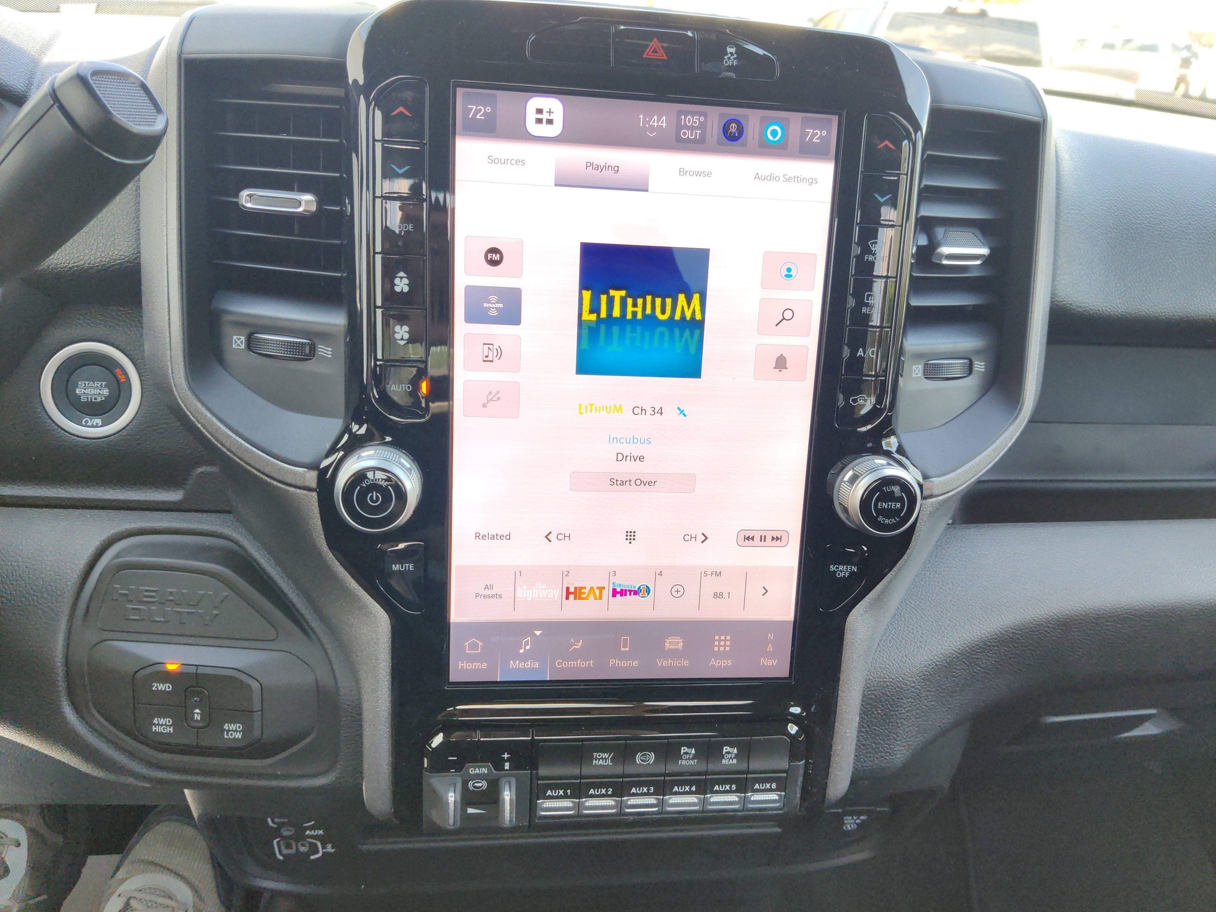 - Radio w/Seek-Scan, Clock, Speed Compensated Volume Control, Aux Audio Input Jack, Voice Activation, Radio Data System and Uconnect External Memory Control