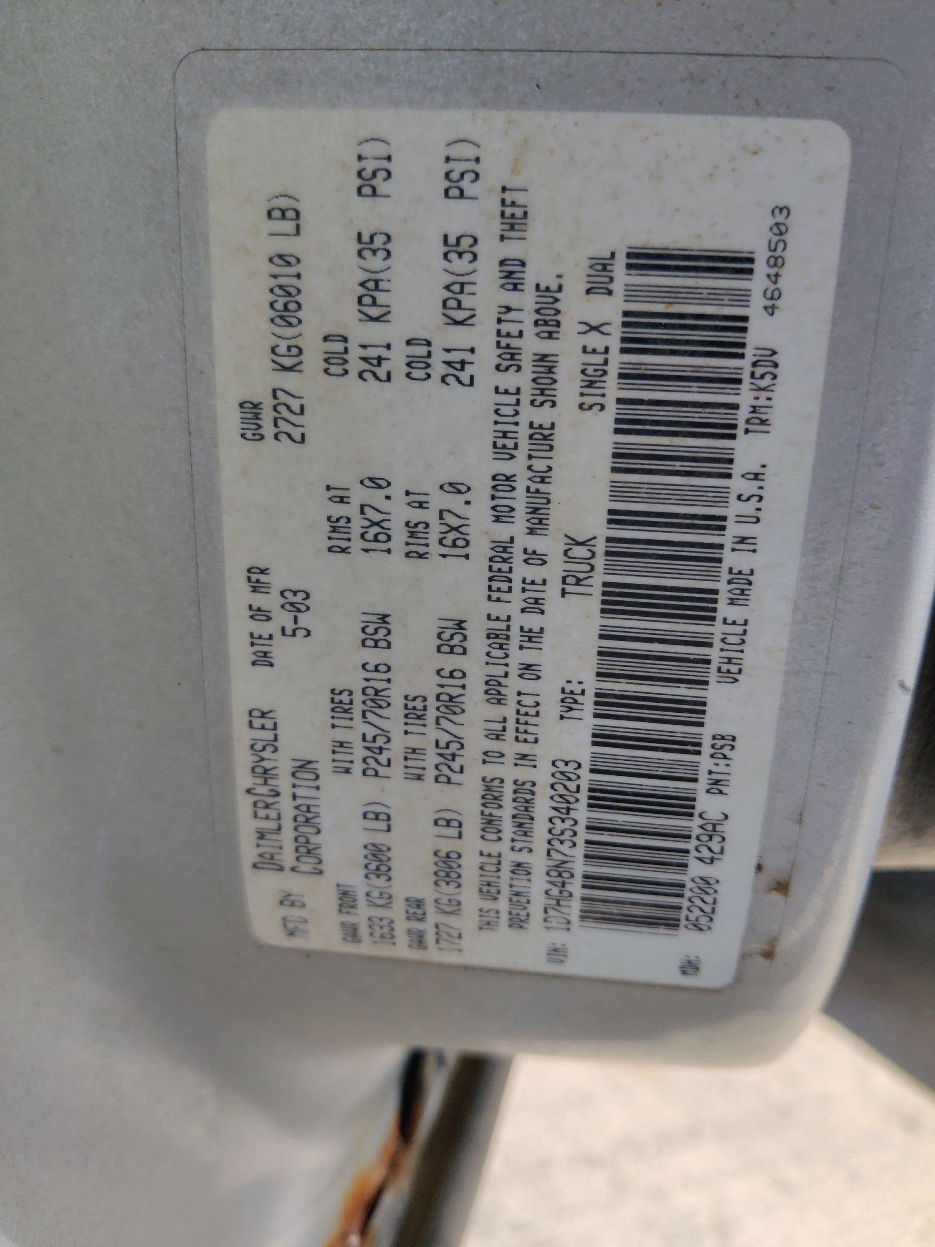 - Vehicle Name: Dodge Dakota